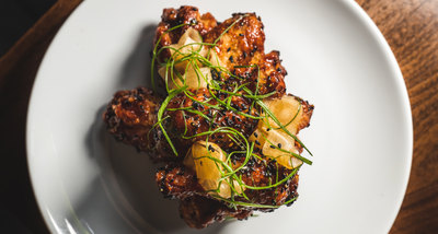 chicken wings, charcoal gochujung sauce, tosazu pickle daikon, green scallions
