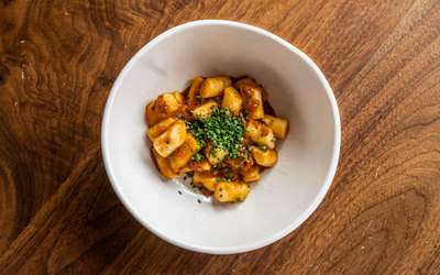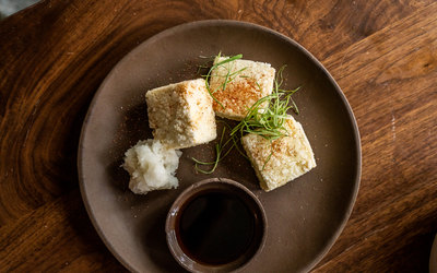 agedashi tofu, fermented chili ponzu, gochugaru citrus spice