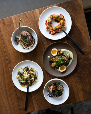pork belly rice bowl // foie gras rice bowl // sunchoke tahini salad// chicken wings,// agedashi tofu